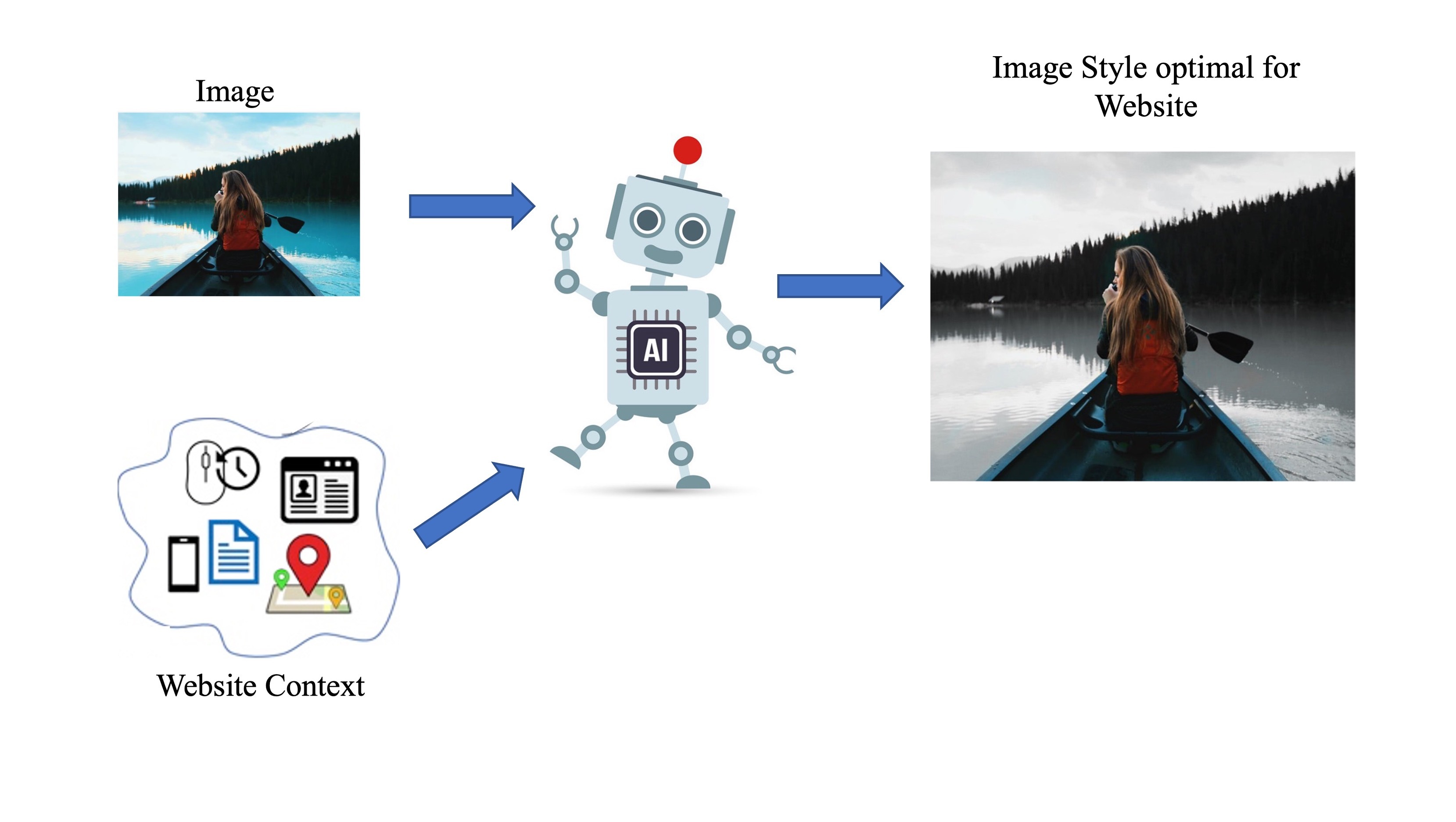 Content personalization is one of the foundations of today’s digital marketing. Often the same image needs to be adapted for different design schemes for content that is created for different occasions, geographic locations or other aspects of the target population. We present a novel reinforcement learning (RL) based method for automatically stylizing images to complement the design scheme of media, e.g., interactive websites, apps, or posters. Our approach considers attributes related to the design of the media and adapts the style of the input image to match the context. We do so using a preferential reward system in the RL framework that learns a reward function using human feedback. We conducted several user studies to evaluate our approach and demonstrate that we are able to effectively adapt image styles to different design schemes. In user studies images stylized through our approach were the most preferred variation across a majority of our experiments. Additionally, we also release a dataset consisting of perceptual associations of web context with the associated image style.