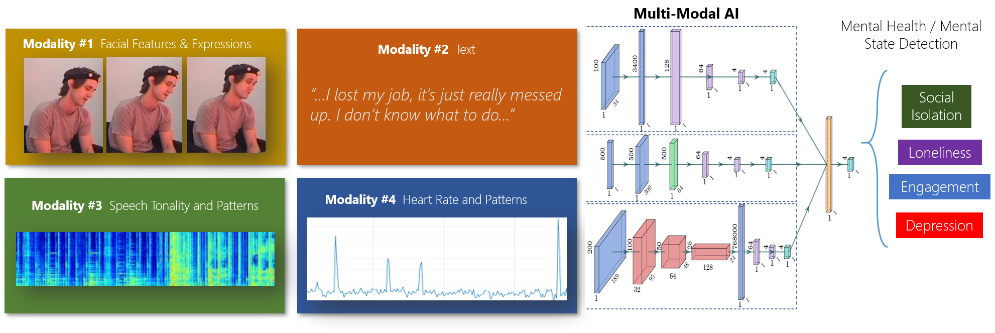 To address this, GAMMA is collaborating with the child behavioral health experts at the University of Maryland Baltimore for an UMCP-UMB MPower COVID-19 project. Artificial Intelligence (AI) strategies assess engagement as an emotional state. We propose a new semi-supervised AI learning paradigm using Dual Attention Networks (DANs), which will jointly leverage visual and vocal/text attention mechanisms from our caregivers to capture the fine-grained interplay between visual cues and language. DANs attend to specific regions in images and words in text/voice through multiple steps and gather essential information from both modalities to measure affective states, i.e. engagement. This multimodal fused analysis will be used to derive an automated engagement score. From a health care perspective, an automated engagement score can be used in future studies to give providers real-time, quantitative feedback during or immediately post-session. Relevant to artificial intelligence science, this research can be used to model pandemic-related contextual factors (e.g. social isolation), and will influence the discordance between trained observer ratings and self-report on an emotional state.